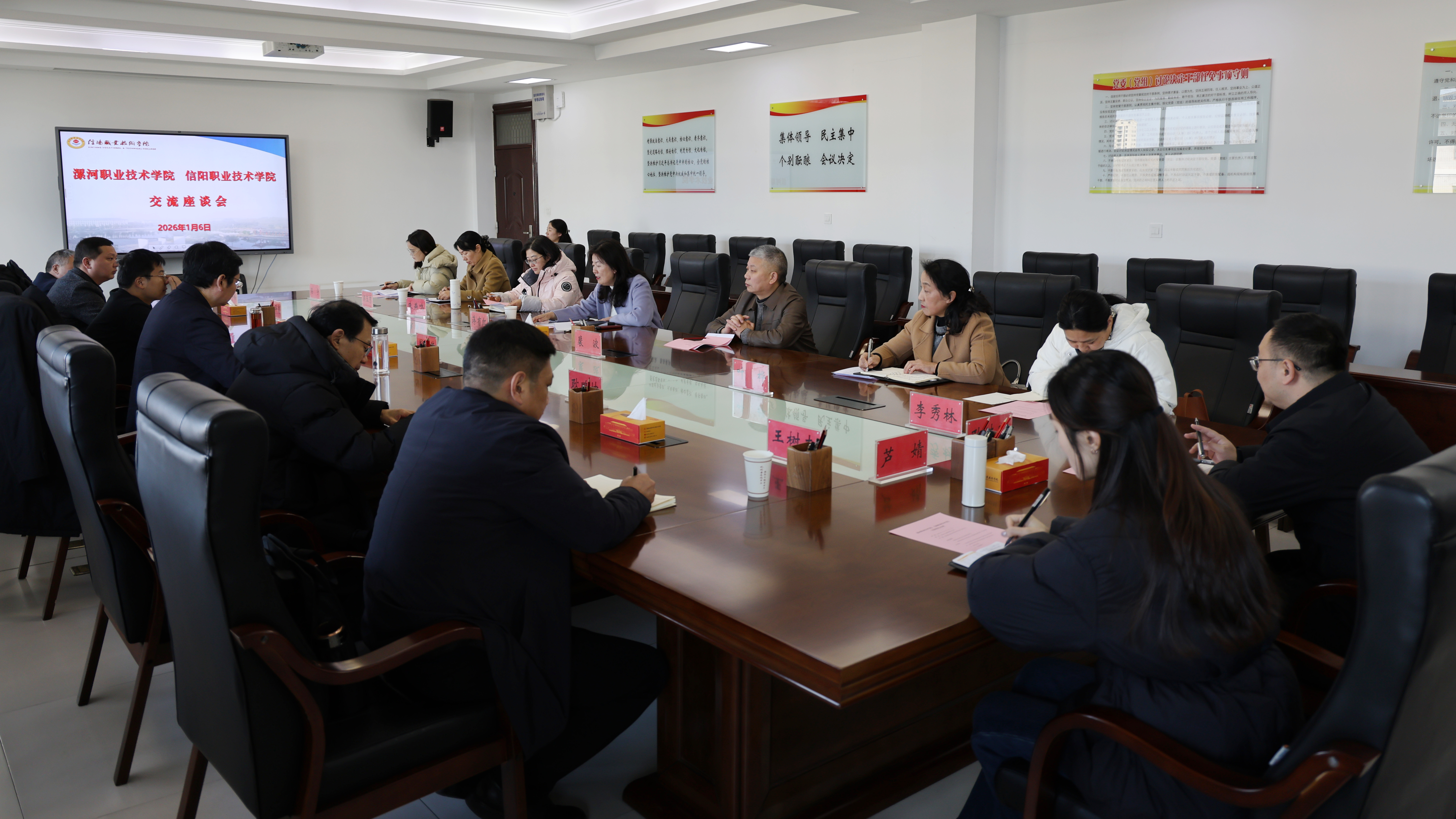 1月6日下午,漯河职业技术学院党委副书记周俊伟一行到校考察交流。我校党委副书记蒋有红出席并主持座谈会。相关院部和处室党组织负责同志参加。